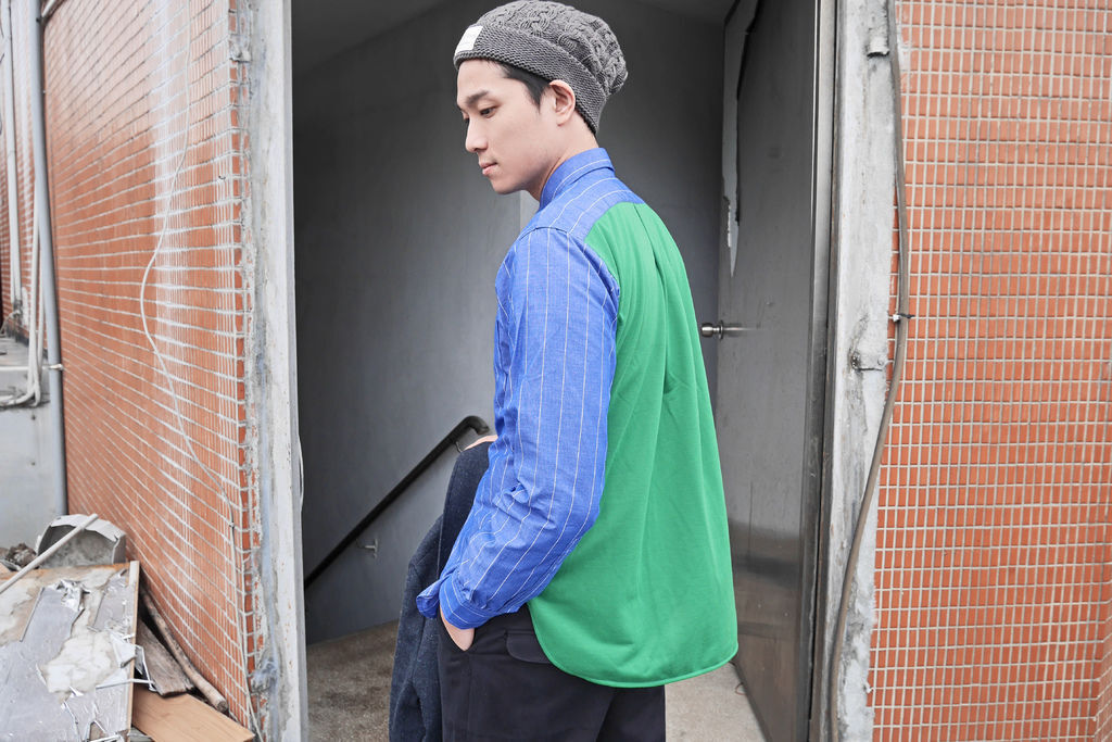 工作襯衫與工作夾克搭配雙色牛仔褲,