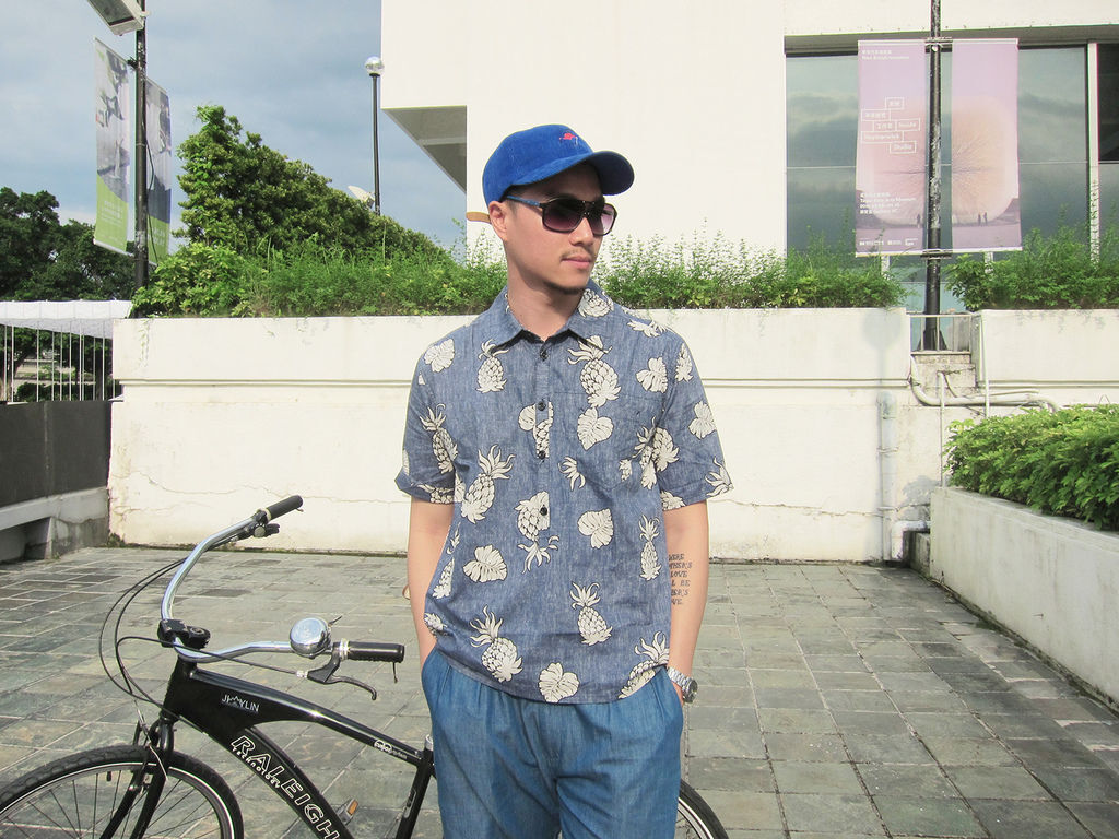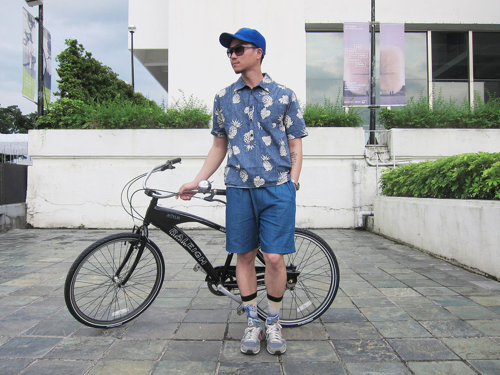 打扮上為了配合腳踏車的復古感,搭配上也走一點復古風,