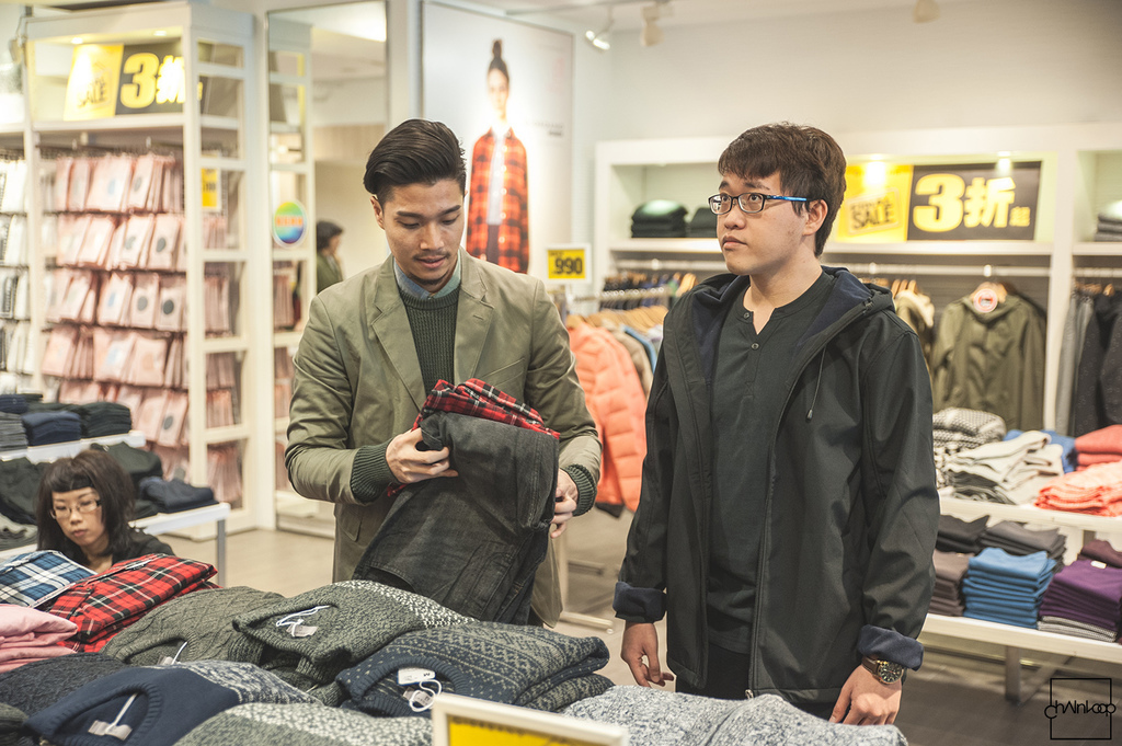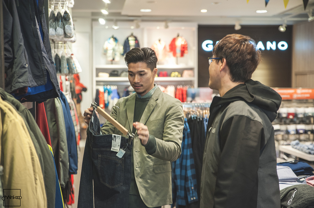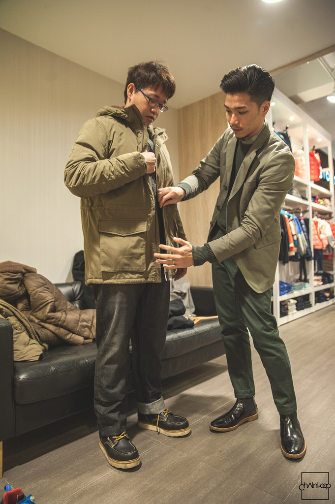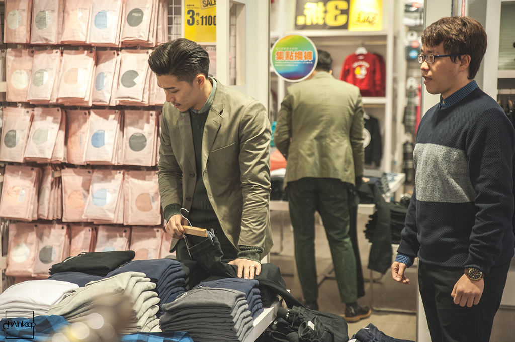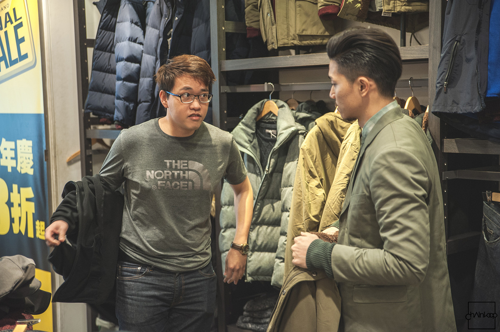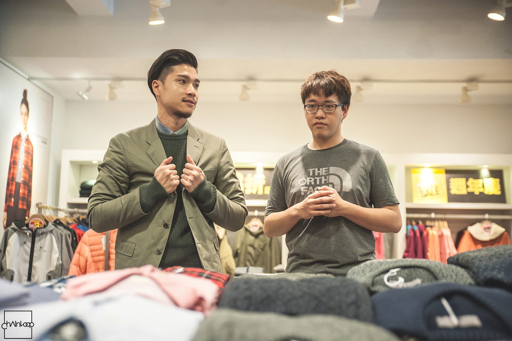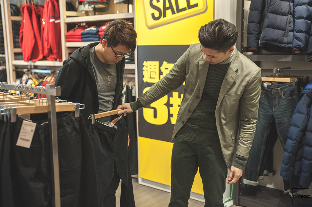 剛好店內目前都是大量的羽絨外套跟毛衣與牛仔褲或是運動外套跟束口褲,