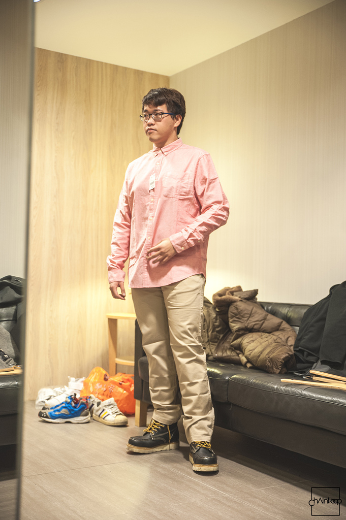 下身的中直筒卡其褲也可以把較粗大的大腿修飾,