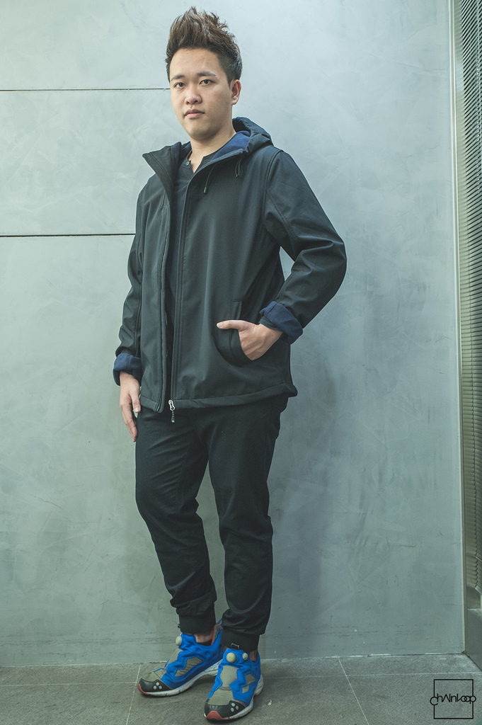以整身黑色系來修飾身型之外,講求機能性的單品也講究剪裁,