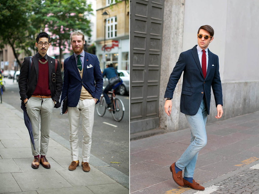 - 來雙年輕時髦的鞋款吧:樂福鞋跟雕花牛津鞋年輕鞋款才是王道,現在在些時尚聚會上也能看到穿白色休閒鞋款,嚴禁正經八百的商務皮鞋。