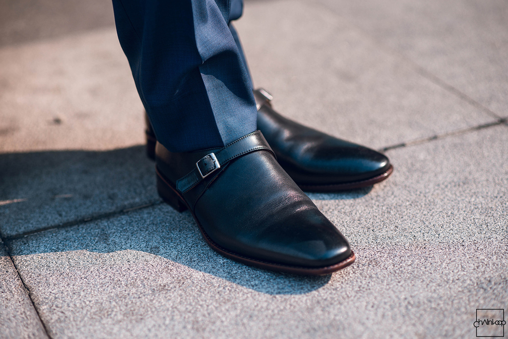 西裝:EelgaZzle / 襯衫:EelgaZzle / 領帶:RAF Simons / 孟克鞋:Lancelot Footwear