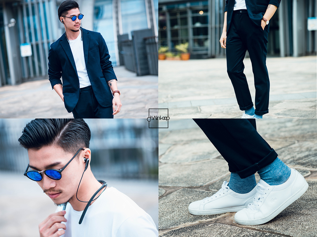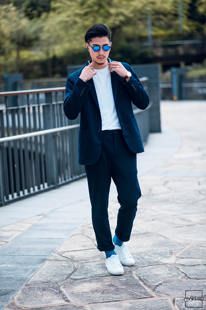 成套休閒西裝:GU / 鞋子:Lacoste / 眼鏡:Spektre