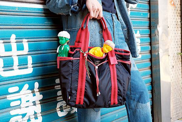 像是我特別在脖子上的紅色領巾與托特掰紅色織帶與皮革呼應,