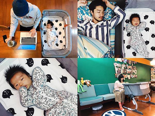 所以我們在家工作時都會把001的Unilove嬰兒床拉到我們旁邊,一邊工作一邊看著001,