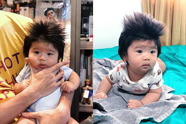 沒想到001遺傳到我們濃密的頭髮,就成為了 #爆毛001 。