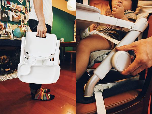 所以經歷了種種各式各樣千奇百怪的兒童椅後,我們就決定,要帶著001出外用餐專屬的餐椅才是最明智的方式,