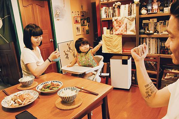 但001能跟著我們一樣坐在椅子,圍著餐桌一起享受用餐時光的感覺真的很棒,