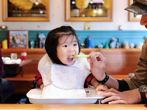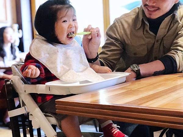 遇到那種只能提供木頭兒童椅卻沒有安全帶時,吃個飯都覺得這真的好危險啊,只能一直抱起來結果大人也沒辦法好好吃飯(GG),