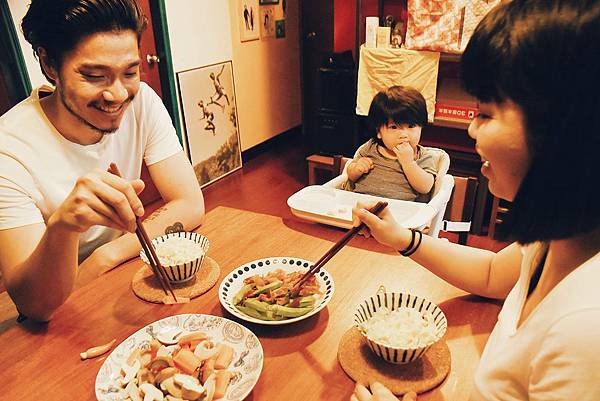 因為還不會自己吃東西,所以每到用餐時間我們都會先喂飽001後,我跟準太兩人才能吃飯,