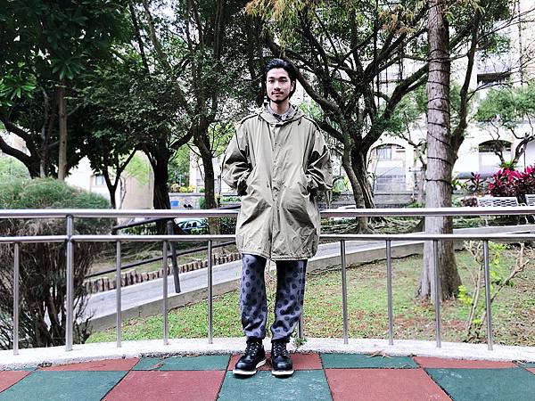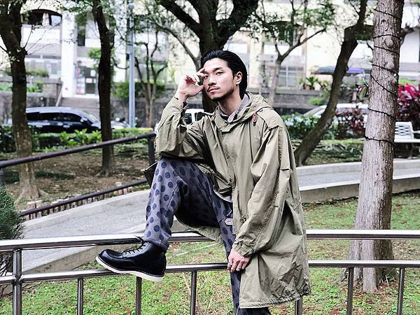 像是這套造型整體風格挺混搭的,上半身運用經典的公發軍外套M-51 Parka,