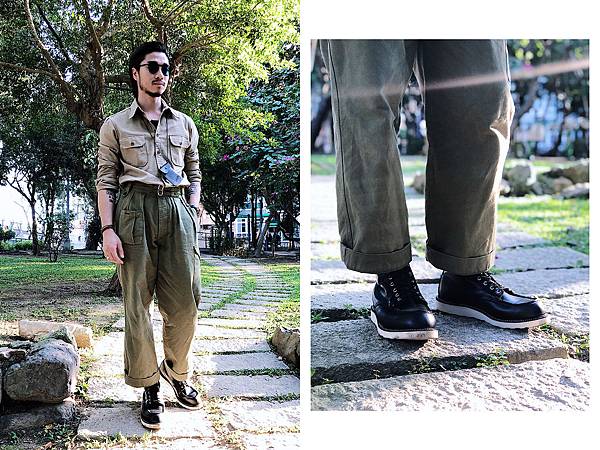 像這套我選擇復刻軍用襯衫與軍褲來與腳上這雙RED WING搭配,