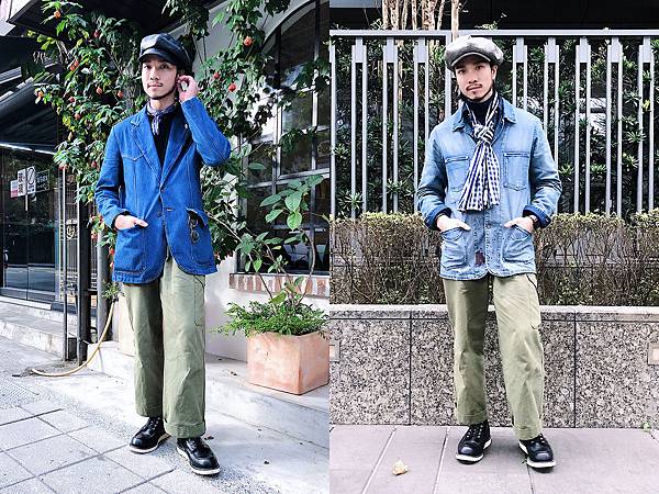 所以造型上可以展現個人穿搭風格,我選擇丹寧西上裝與軍褲的組合,